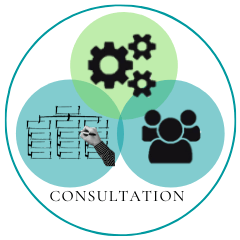 Comme représenté par le logo, nos services de consultation et d’accompagnement portent sur les trois sphères qui forment une cohésion afin que chaque organisation puisse accomplir sa mission.